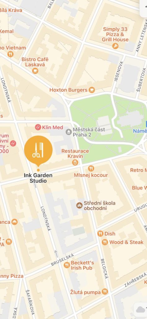 Doporučuji využít MHD – nejbližší zastávky jsou Náměstí Míru, I.P.Pavlova nebo Bruselská.